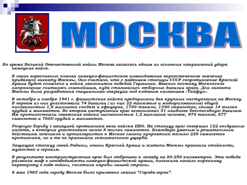 8 мая 1965 года городу Ленинграду было присвоено звание “Города-героя”.