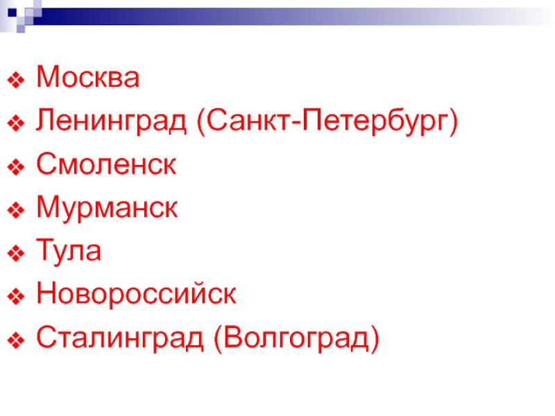 1 мая 1945 г. в приказе Верховного Главнокомандующего И.В. Сталина г. Ленинград назван в числе первых городов-героев. Девятисотдневная защита осажденного города — легендарная повесть мужества, вызвавшая удивление и восхищение современников, навсегда останется в памяти грядущих поколений.