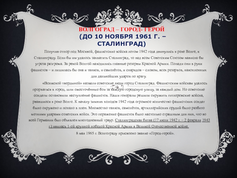 Слайд 10ВОЛГОГРАД – ГОРОД- ГЕРОЙ