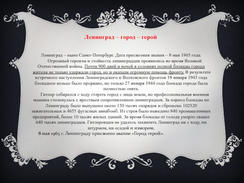 Слайд 18Ленинград – город – герой