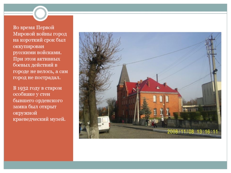 Слайд 9Во время Первой Мировой войны город на короткий срок был оккупирован