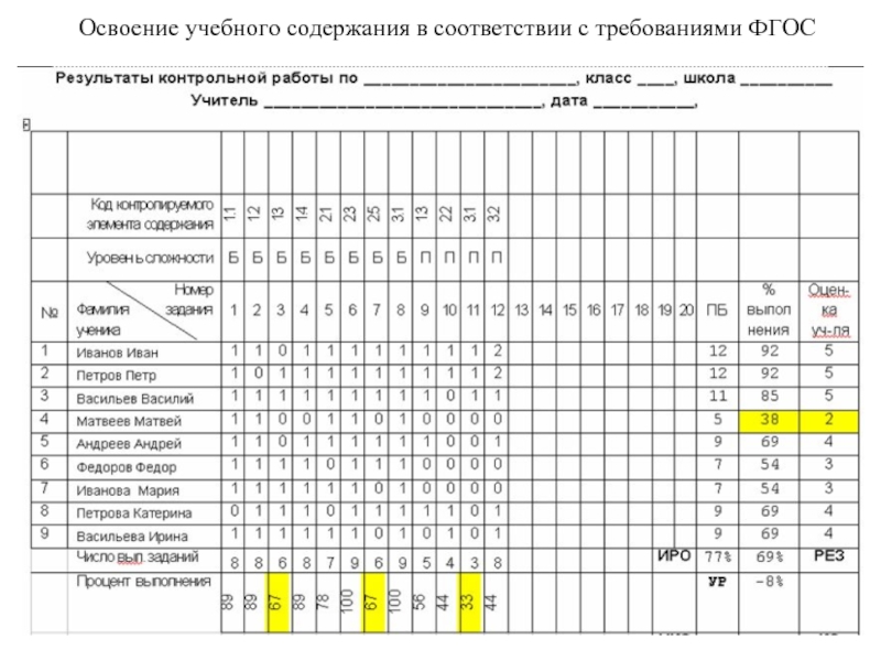 Слайд 13Освоение учебного содержания в соответствии с требованиями ФГОС