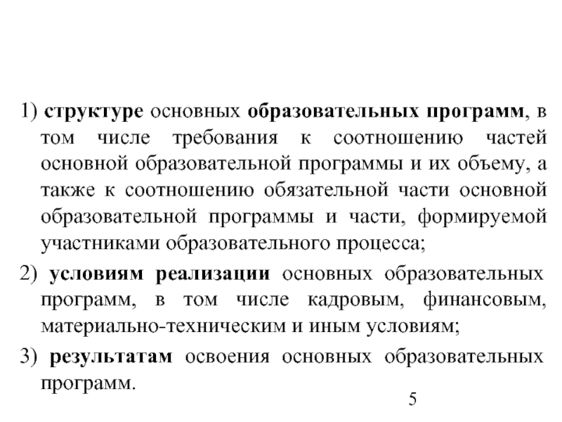 1) структуре основных образовательных программ, в том числе требования к соотношению