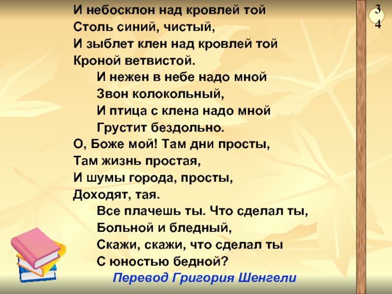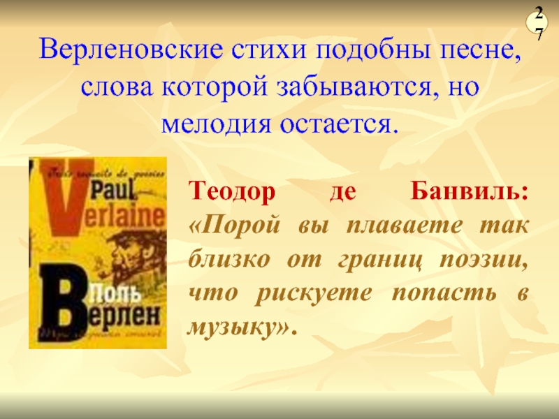 Верленовские стихи подобны песне, слова которой забываются, но мелодия остается.