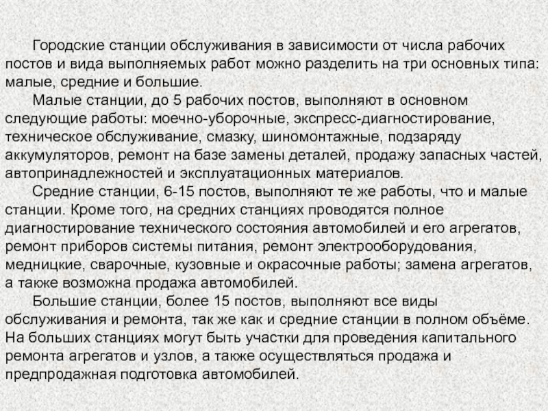 Городские станции обслуживания по характеру оказываемых услуг могут быть универсальными –