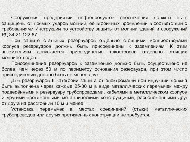 Слайд 45 Сооружения предприятий нефтепродуктов обеспечения должны быть защищены от прямых ударов молний,
