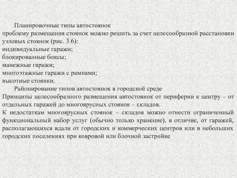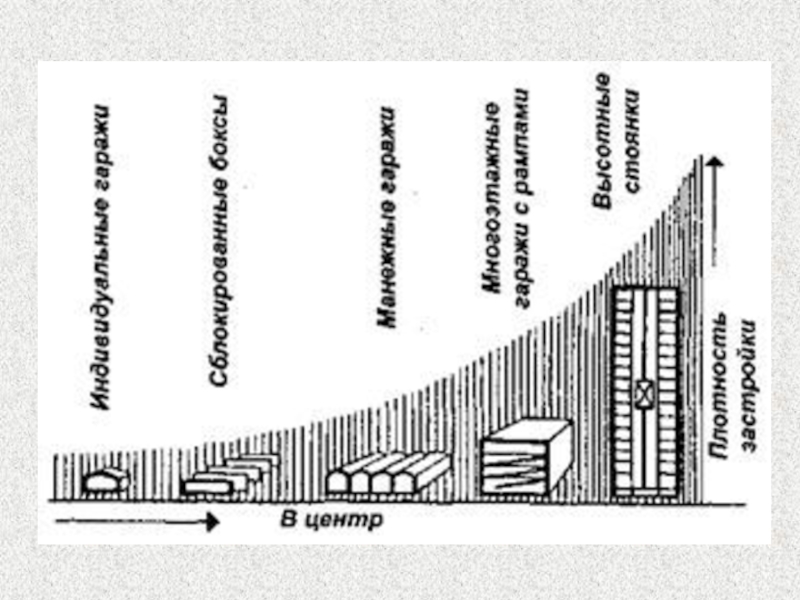 Принципы целесообразного размещения автостоянок от периферии к центру – от отдельных гаражей до многоярусных стоянок – складов.