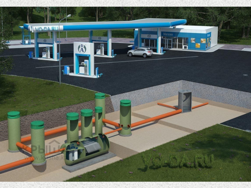 Хранение нефтепродуктов на АЗС осуществляется в металлических горизонтальных надземных или заглубленных