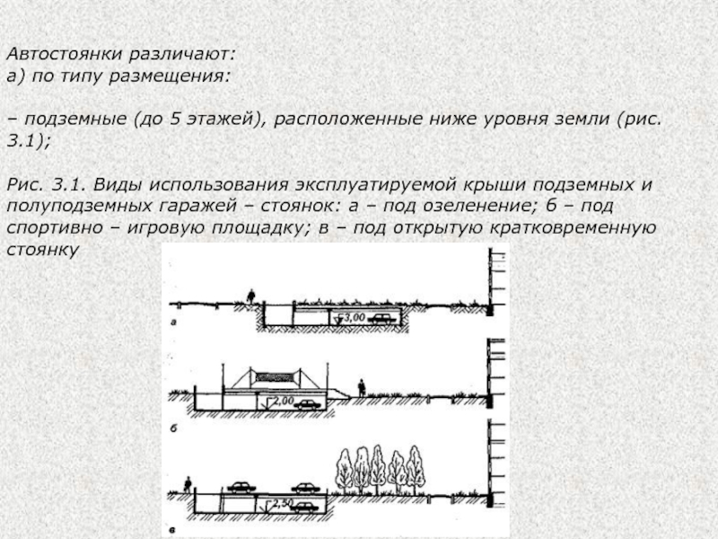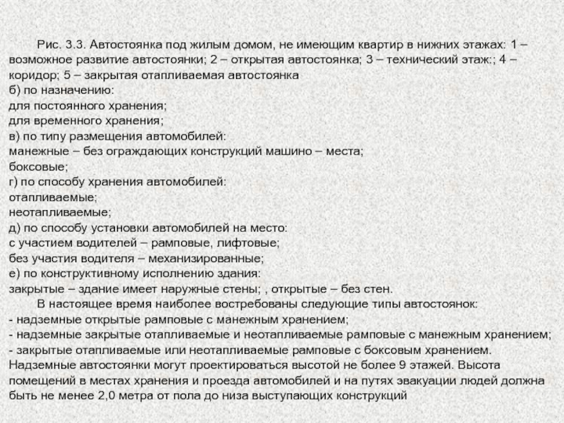 Слайд 21 Рис. 3.3. Автостоянка под жилым домом, не имеющим квартир в нижних