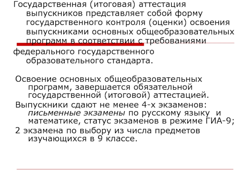 Освоение основных общеобразовательных программ, завершается обязательной государственной (итоговой) аттестацией.