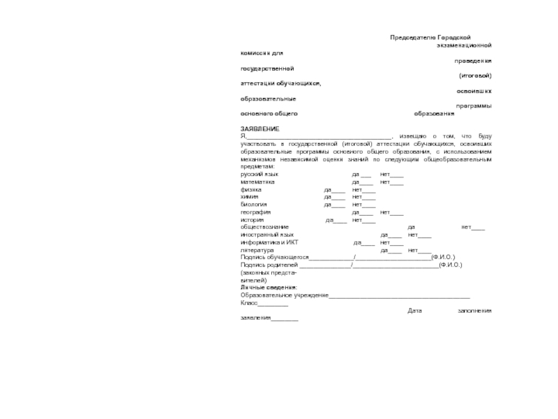 В соответствии с Положением о формах и порядке проведения государственной (итоговой) аттестации обучающихся, освоивших основные общеобразовательные программы среднего (полного) общего образования, утверждённым приказом Министерства образования и науки Российской Федерации от 28 ноября 2008 г. № 362 (зарегистрирован Министерством юстиции Российской Федерации 13 января 2009 г., регистрационный № 13065), с изменениями, внесёнными приказами Министерства образования и науки Российской Федерации от 30 января 2009 г. № 16 (зарегистрирован Министерством юстиции Российской Федерации 20 марта 2009 г., регистрационный № 13559) и от 19 декабря 2011 г.