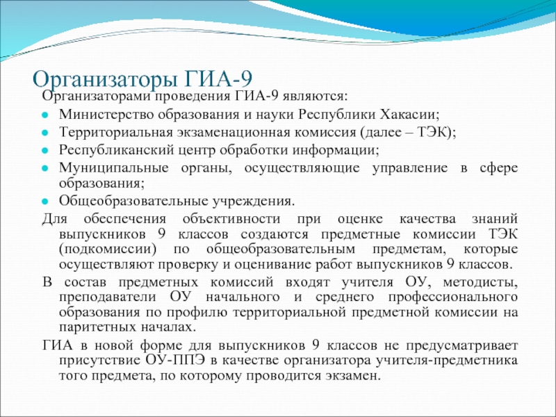 Организаторами проведения ГИА-9 являются: