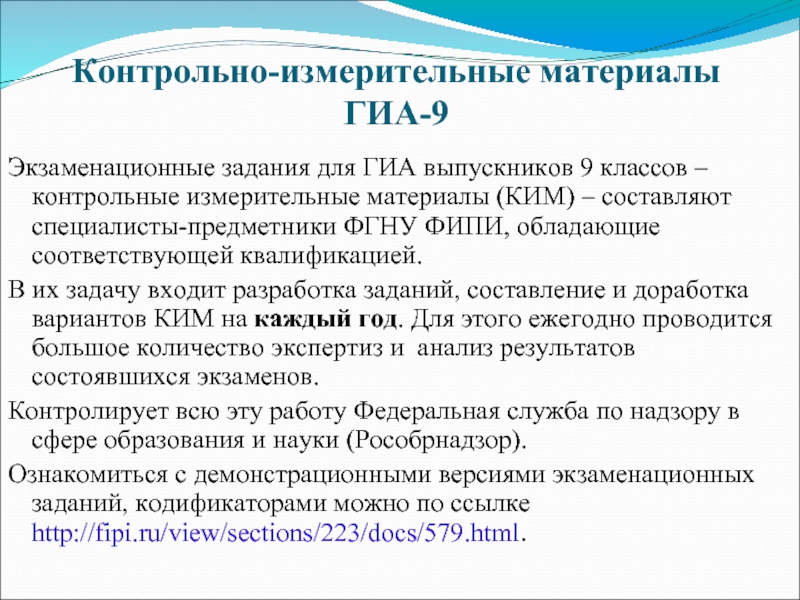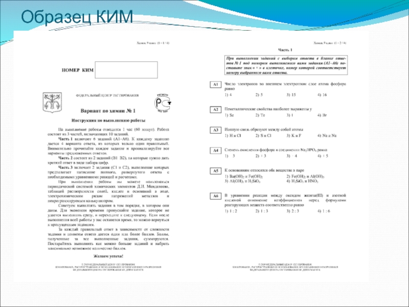 измерительные материалы (КИМ) – составляют специалисты-предметники ФГНУ ФИПИ, обладающие соответствующей квалификацией.