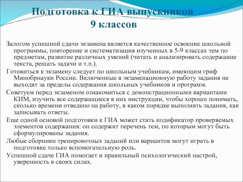 Успешной сдаче ГИА помогает и правильный психологический настрой, уверенность в своих силах.