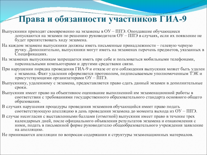 Слайд 14Права и обязанности участников ГИА-9