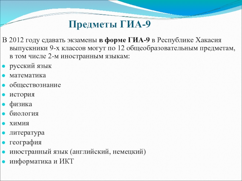 Слайд 4Предметы ГИА-9