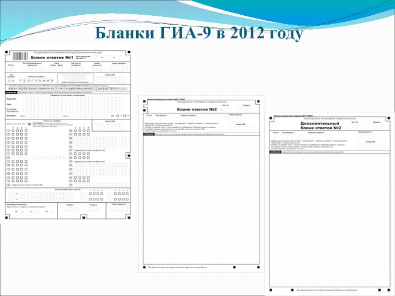 Проведение тренировочных тестирований с использованием демоверсий ГИА-9 2012 года с заполнением образцов бланков ответов № 1,2.