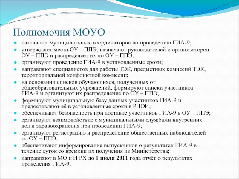 Слайд 12Полномочия МОУО