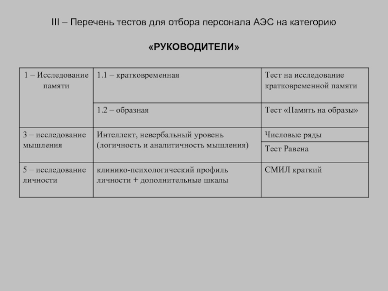 Сформировать перечень аппаратно-программных комплексов, нейрофизиологических, психофизиологических и психологических методов для оценки психофизиологического статуса кандидата при проведении первичного профессионального отбора, мониторинга текущего состояния и проведения углубленного исследования работников АЭС.