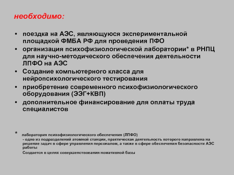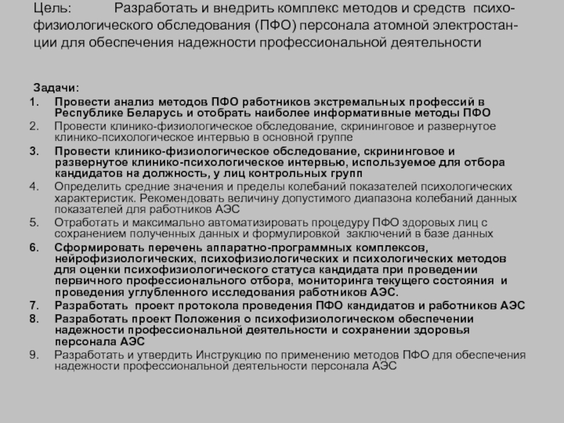 и средств психо-физиологического обследования (ПФО) персонала атомной электростан-ции для обеспечения надежности профессиональной деятельности