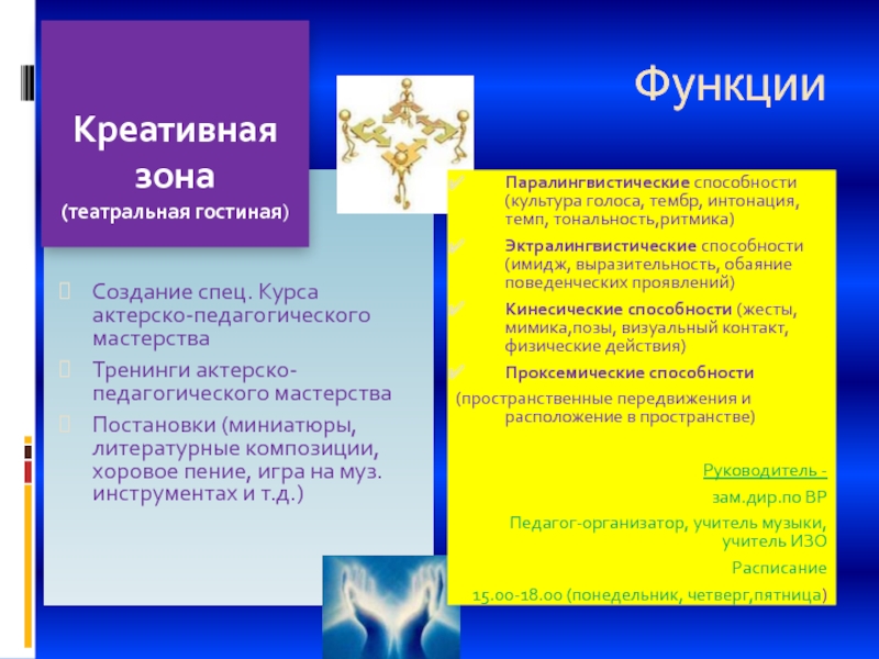 Паралингвистические способности (культура голоса, тембр, интонация, темп, тональность,ритмика)