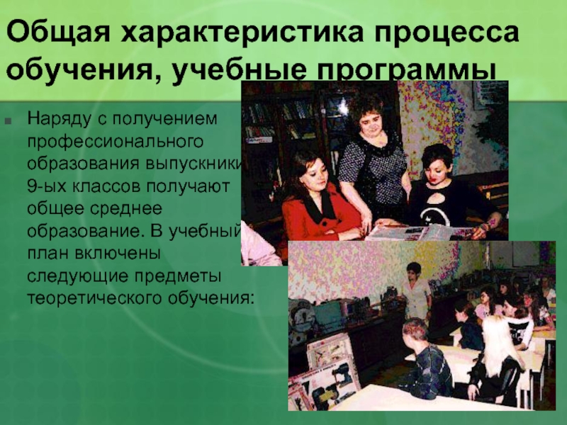 Слайд 4Общая характеристика процесса обучения, учебные программы