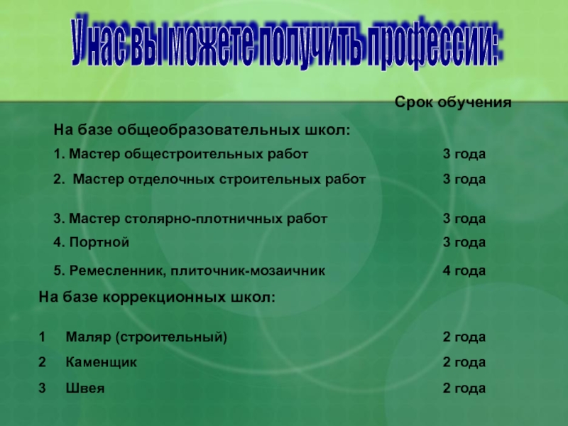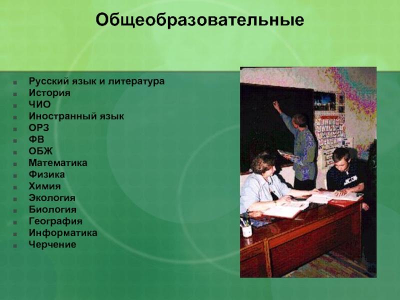 9-ых классов получают общее среднее образование. В учебный план включены следующие предметы теоретического обучения:
