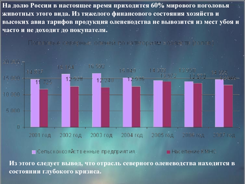 Слайд 18Из этого следует вывод, что отрасль северного оленеводства находится в состоянии