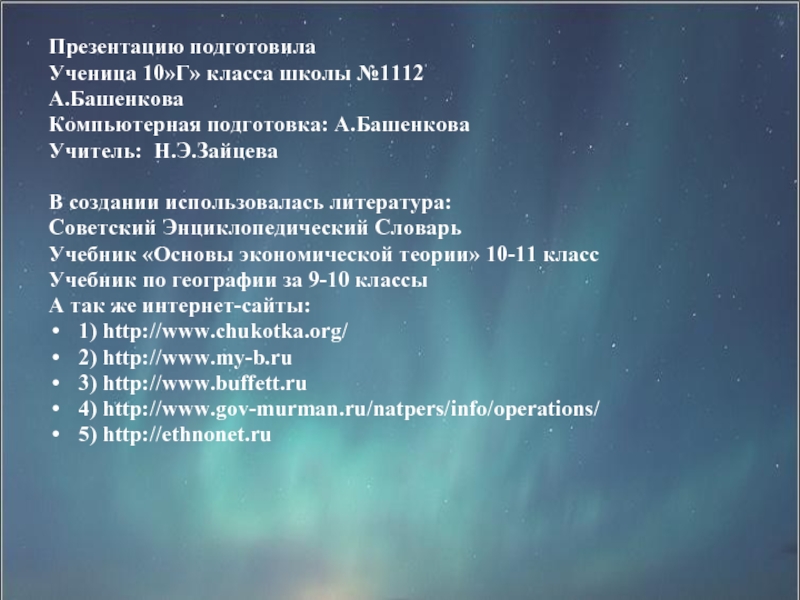 климатических и географических. Но Чукотка располагает собственной ресурсной базой, мощными источниками энергии, отлаженной системой управления и снабжения, а инвестиционная привлекательность округа становится все более очевидной.