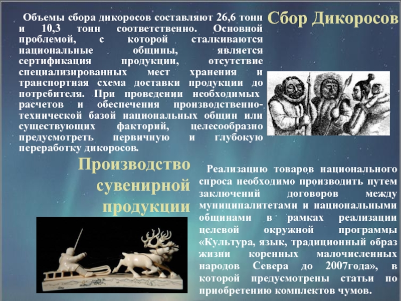 экономическую поддержку традиционной деятельности народов Севера.