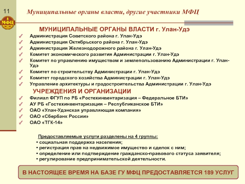 В НАСТОЯЩЕЕ ВРЕМЯ НА БАЗЕ ГУ МФЦ ПРЕДОСТАВЛЯЕТСЯ 189 УСЛУГ