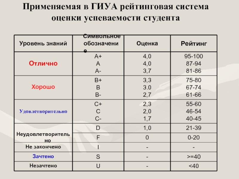 Слайд 12Применяемая в ГИУА рейтинговая система оценки успеваемости студента
