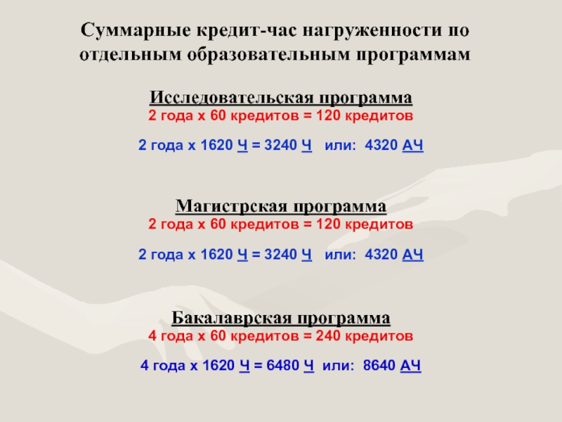 Слайд 7Суммарные кредит-час нагруженности по отдельным образовательным программам