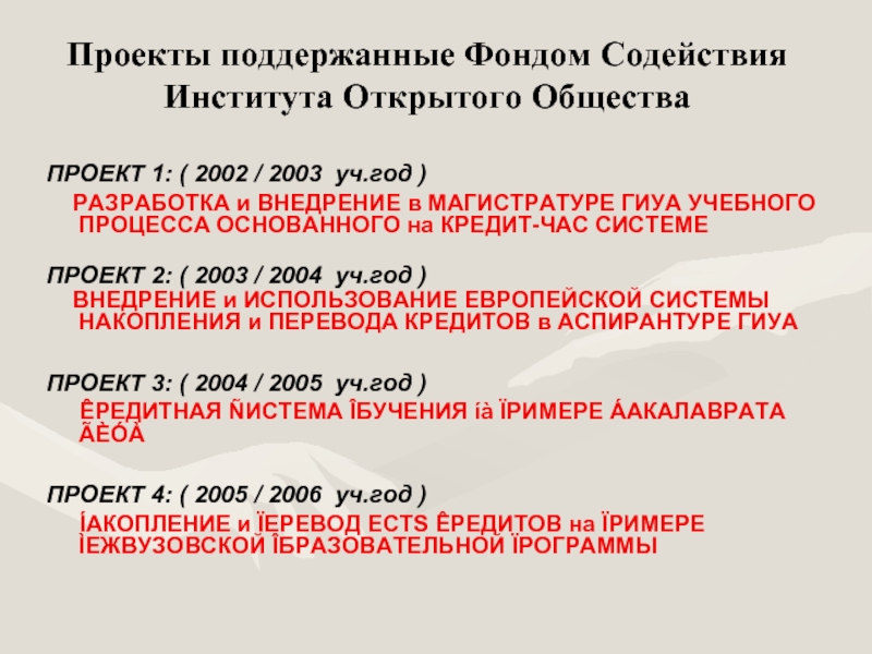 Слайд 3Проекты поддержанные Фондом Содействия Института Открытого Общества