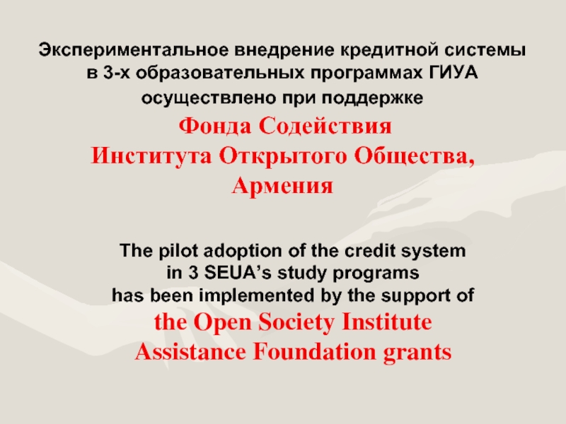 Слайд 30Экспериментальное внедрение кредитной системы в 3-х образовательных программах ГИУА осуществлено при