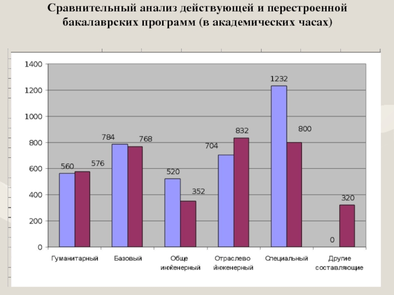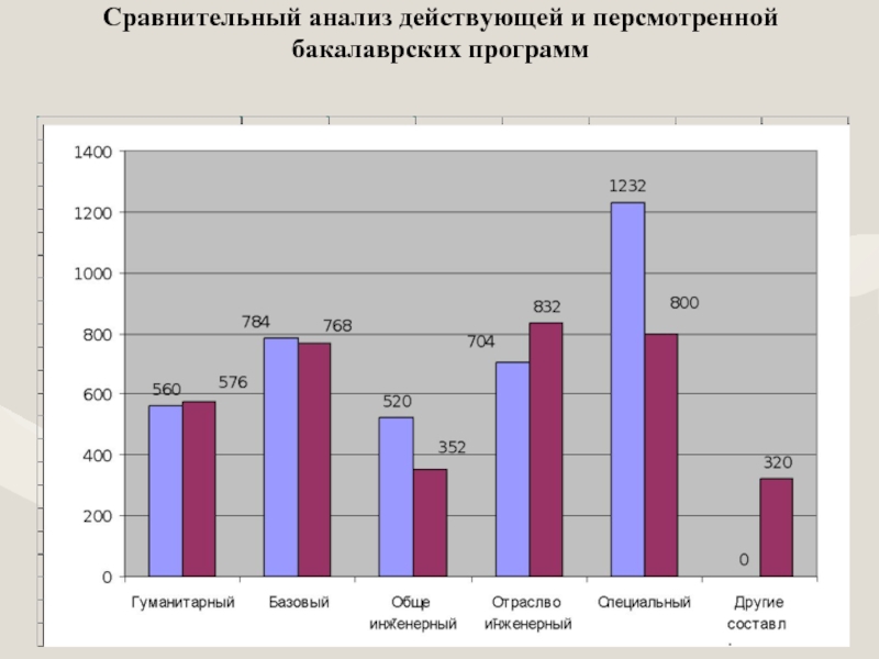 Слайд 33Сравнительный анализ действующей и персмотренной бакалаврских программ