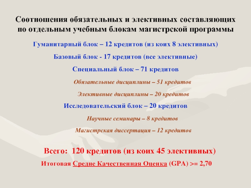 Гуманитарный блок – 12 кредитов (из коих 8 элективных)