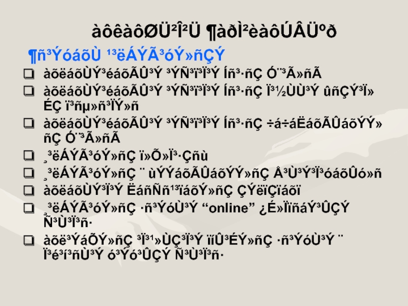 Слайд 32´³Ï³Éíñ³Ï³Ý Ìñ³·ñÇ Îñ»¹ÇïÝ»ñÇ ´³ßËÙ³Ý î³ñµ»ñ³Ï Àëï ²é³ÝÓÇÝ Îñóٳë»ñÇ
