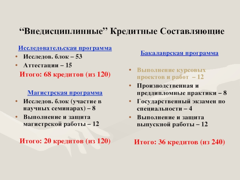 Слайд 8 “Внедисциплинные” Кредитные Составляющие