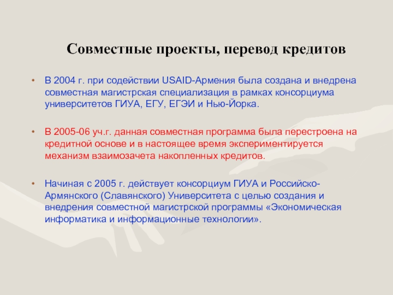 Слайд 2Экспериментальное внедрение кредитной системы в 3-х образовательных программах ГИУА осуществлено при