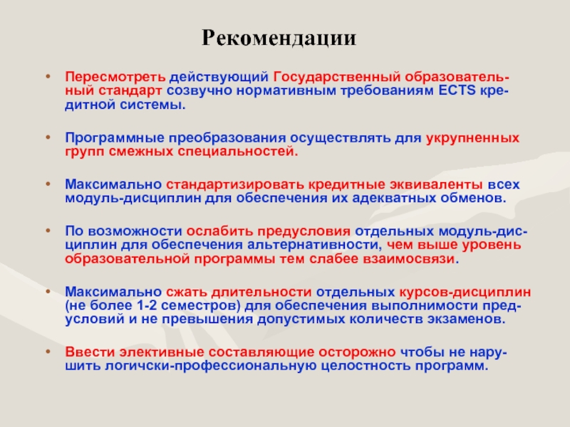Сравнение с требованиями Государственных образовательных стандартов (ГОС) и окончательное уточнение деталей пере-смотренных учебных программ.