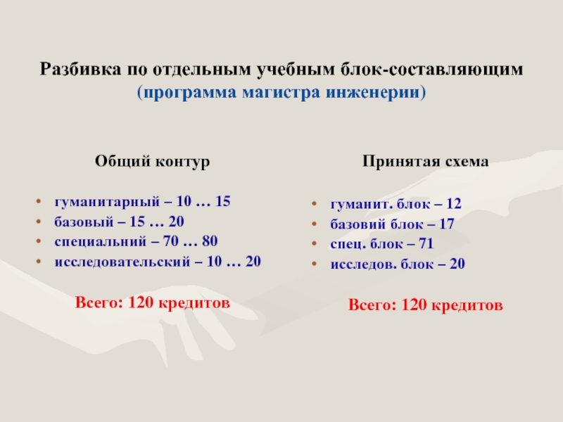 Разбивка по отдельным учебным блок-составляющим (программа магистра инженерии)