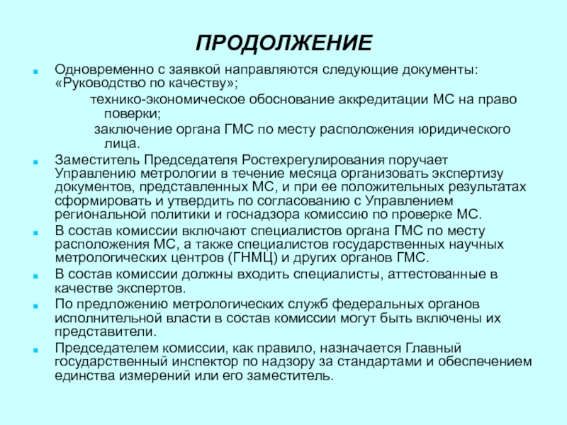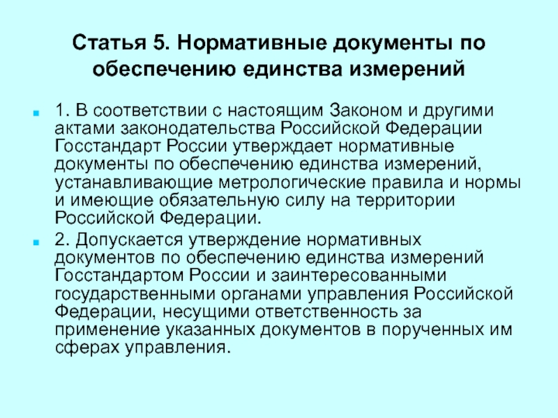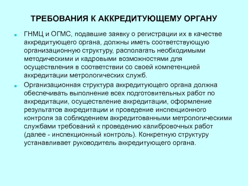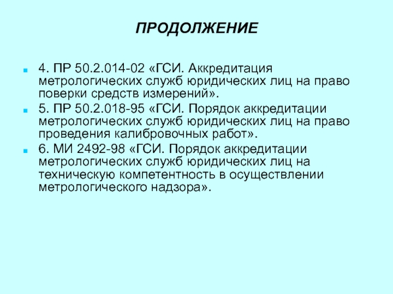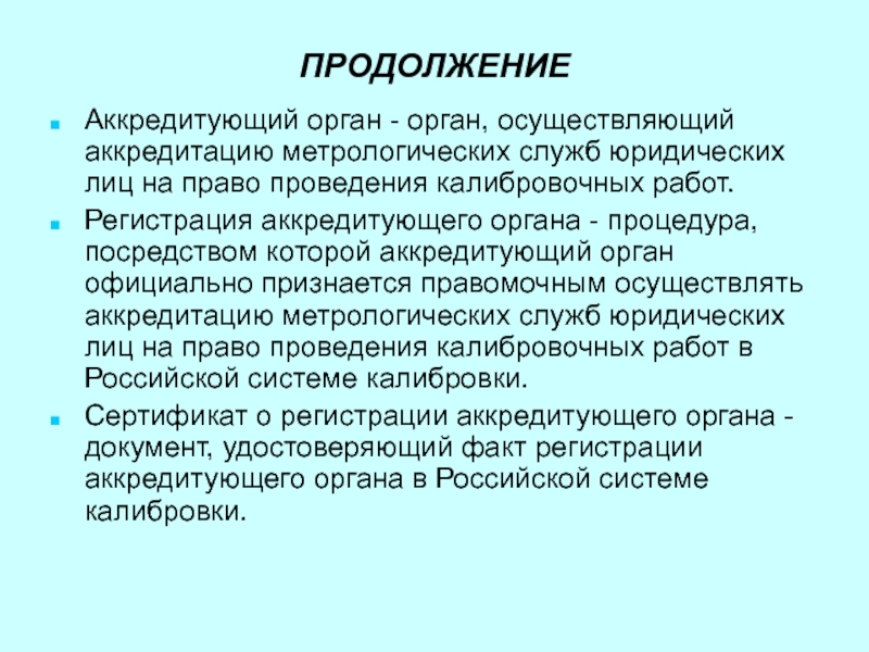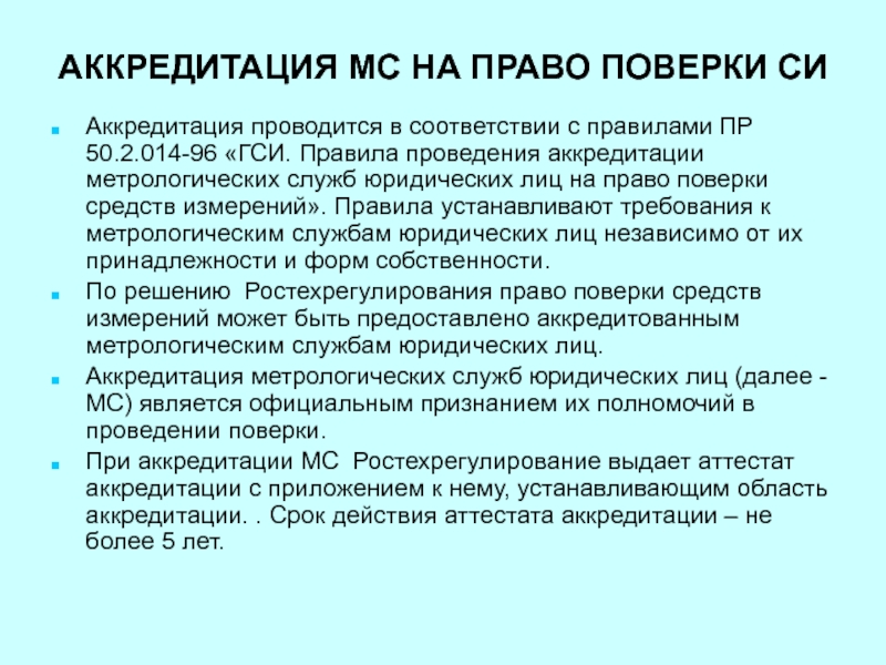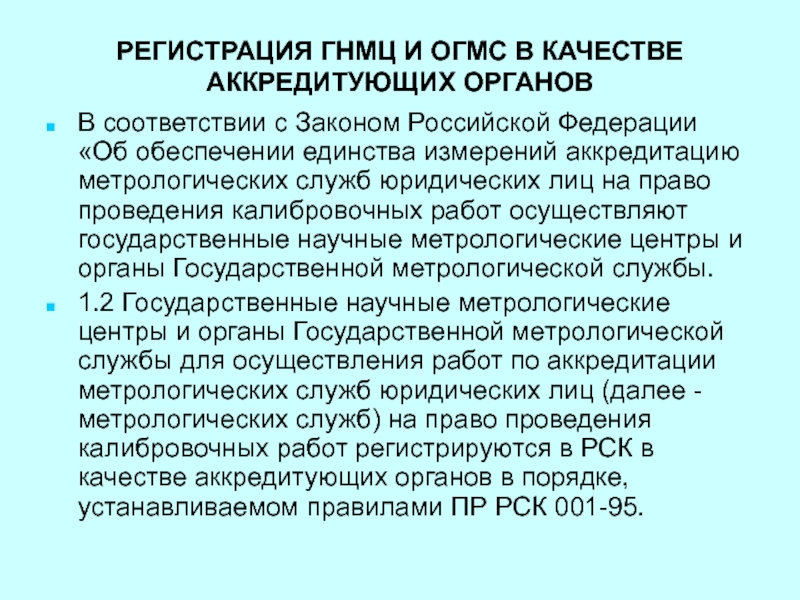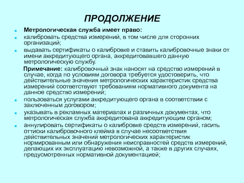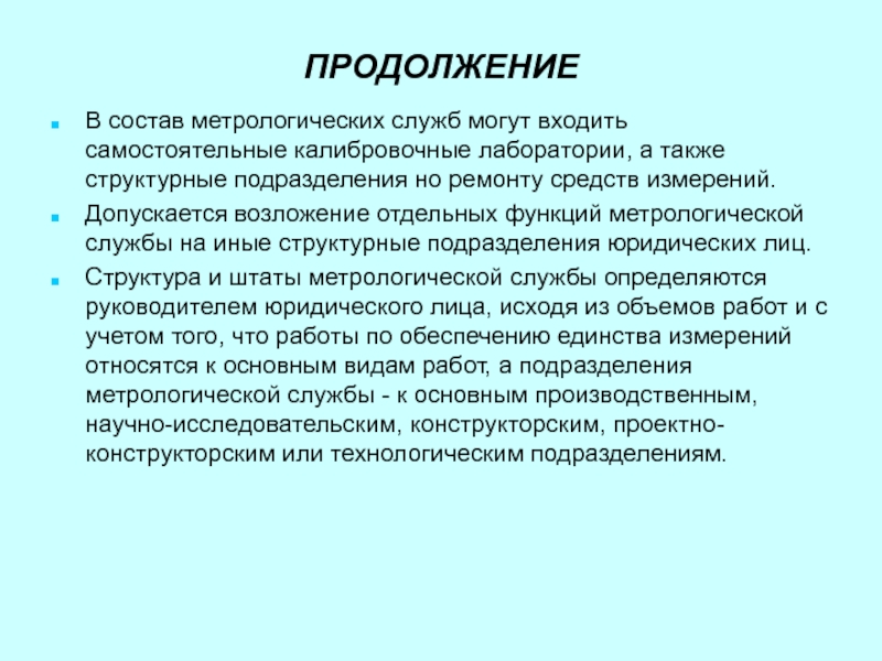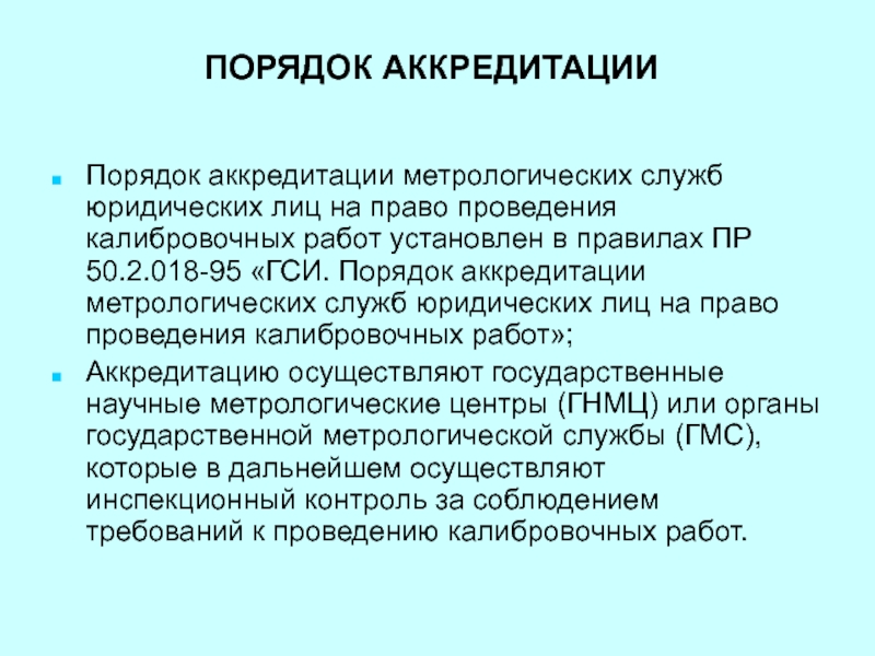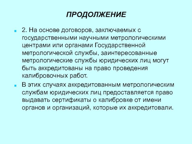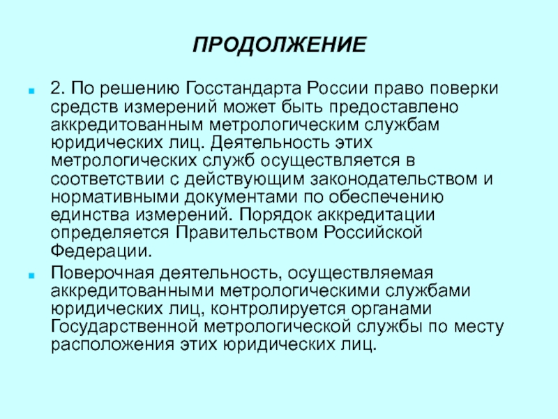 предоставлено аккредитованным метрологическим службам юридических лиц. Деятельность этих метрологических служб осуществляется в соответствии с действующим законодательством и нормативными документами по обеспечению единства измерений. Порядок аккредитации определяется Правительством Российской Федерации.
