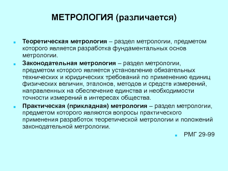 Теоретическая метрология – раздел метрологии, предметом которого является разработка фундаментальных