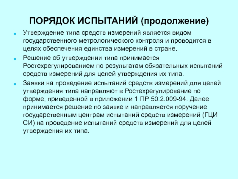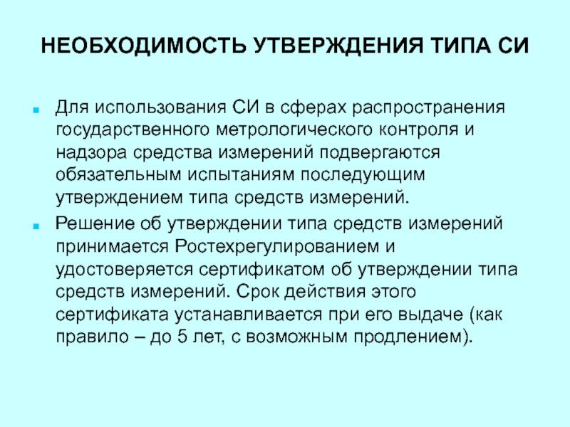 контроля и надзора средства измерений подвергаются обязательным испытаниям с последующим утверждением типа средств измерений.