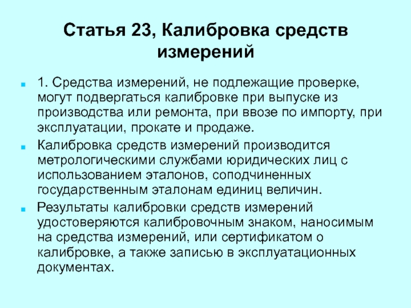 Калибровка средств измерений производится метрологическими службами юридических лиц с использованием эталонов, соподчиненных государственным эталонам единиц величин.