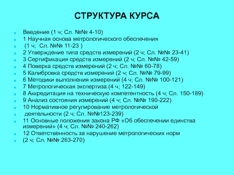 3 Сертификация средств измерений (2 ч; Сл. №№ 42-59)