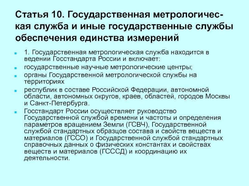 Слайд 253Статья 13. Сферы распространения государственного метрологического контроля и надзора