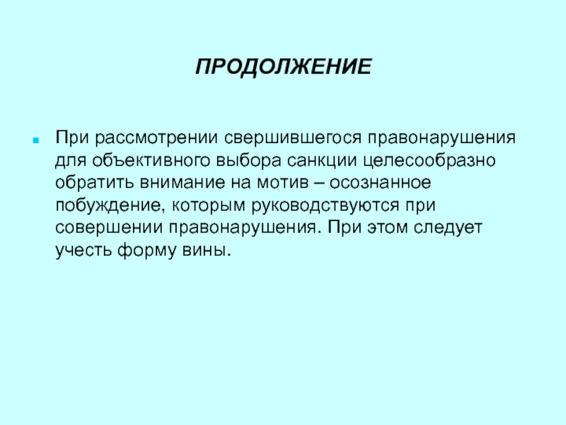 При рассмотрении свершившегося правонарушения для объективного выбора санкции целесообразно обратить внимание