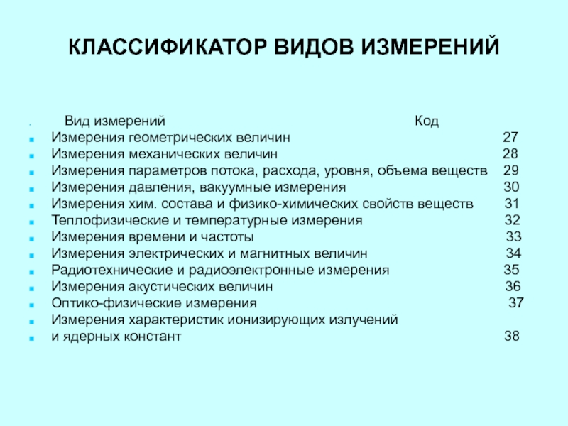 Слайд 18КЛАССИФИКАТОР ВИДОВ ИЗМЕРЕНИЙ